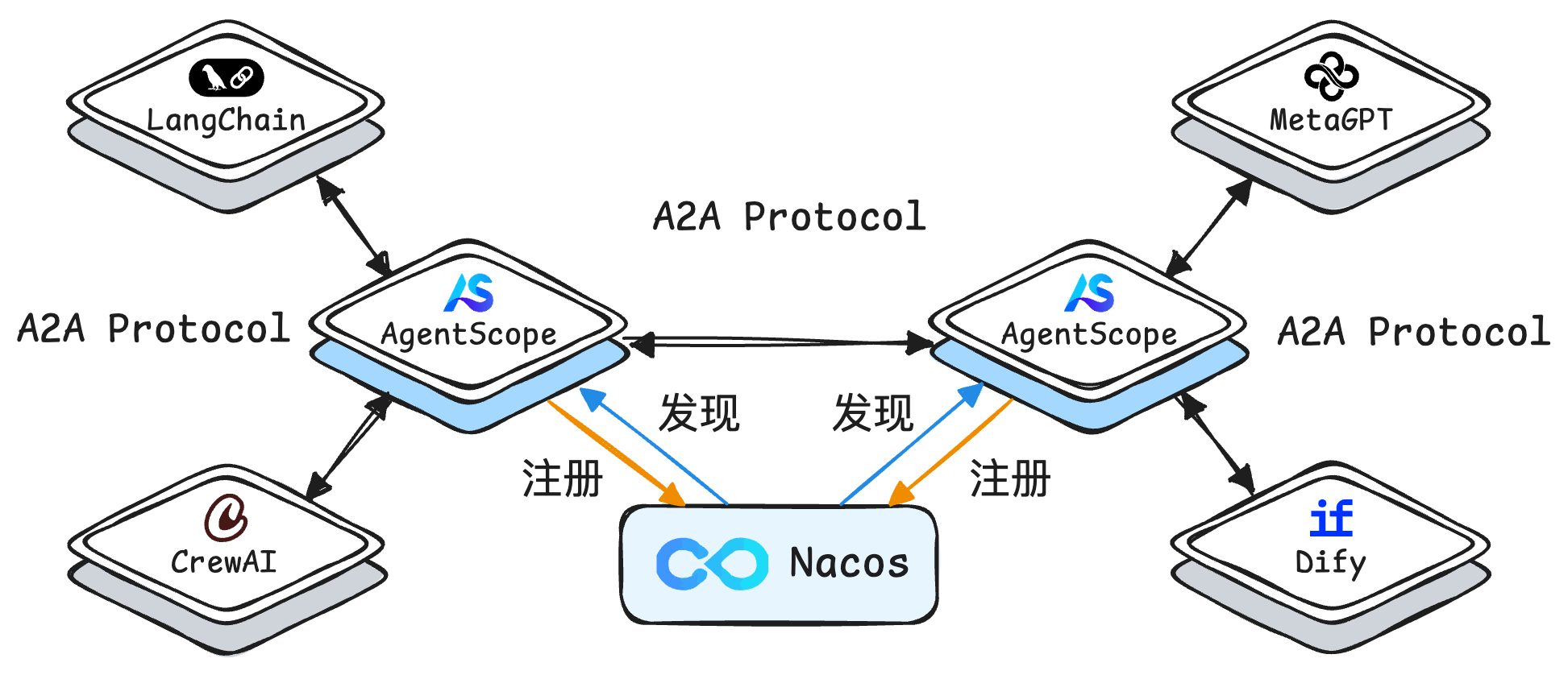 AgentScope 基于 A2A 协议与 Nacos Agent Registry,实现智能体的统一发现、治理与跨生态协作。